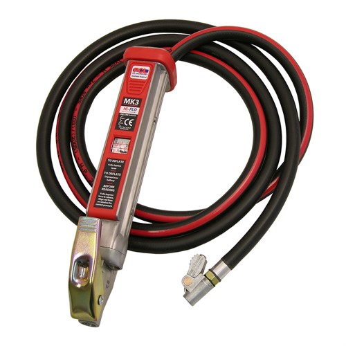 Luftpåfyllare med aluminium kropp i slimline utförande . Linjärt mätområde 0 – 9,6 bar med förstoring i tittfönstret. Samtliga påfyllare är individuellt provade och testprotokollen medföljer. Tillverkad i enlighet med direktiven EC86/217/EEC. Levereras med 1,2 m slang med pumpnippel med låsning